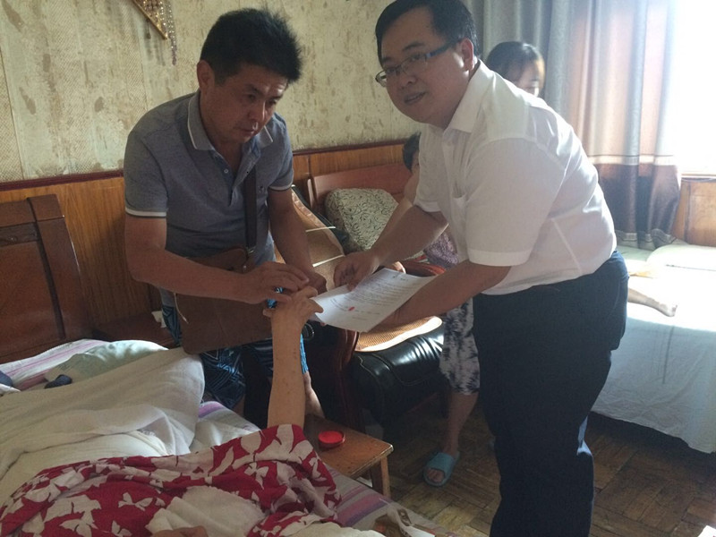 2018年9月2日,市二手房房票結(jié)算中心在接到一戶因房票權(quán)利人中風癱瘓后常年臥床,無法到達結(jié)算服務(wù)大廳現(xiàn)場辦理業(yè)務(wù),需提供上門服務(wù)的申請后,結(jié)算中心組織安排前臺工作人員程松同志攜帶相關(guān)材料上門為其現(xiàn)場辦理了業(yè)務(wù),受到客戶的稱贊。